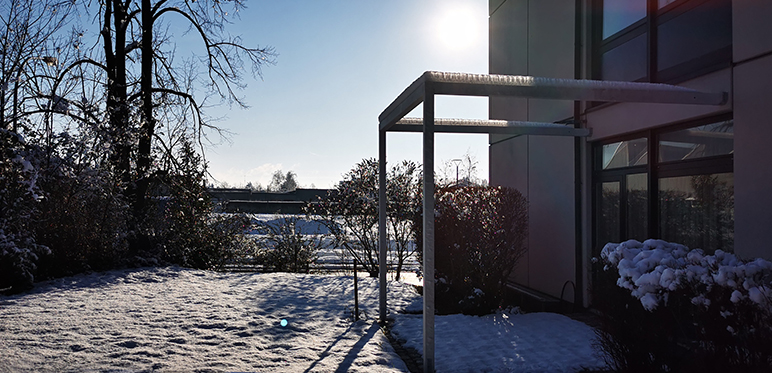 Ein paar Fotos - rund um das MK2 geschossen - mit der herrlichen Winterlandschaft des Januar 2021. Nachts wurde es bis zu -6 Grad, der Schnee blieb liegen und gefror.